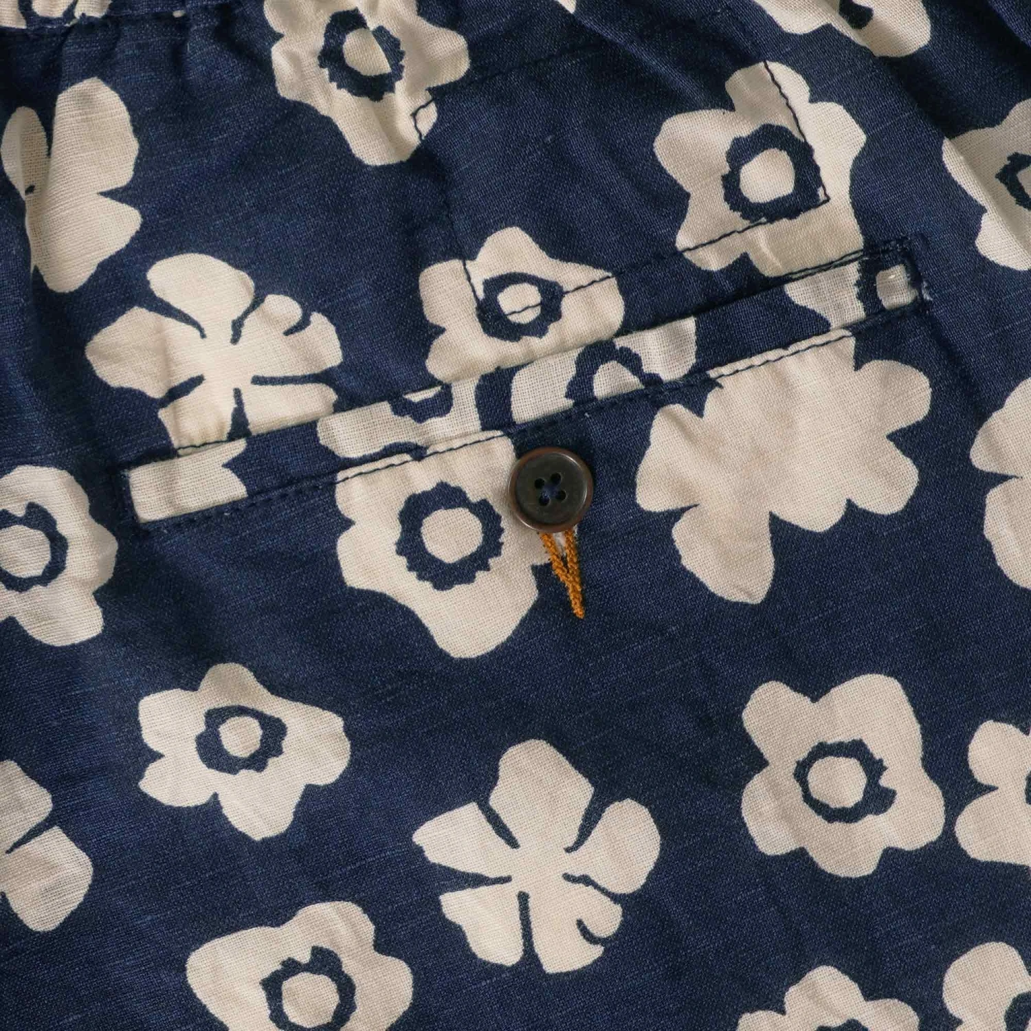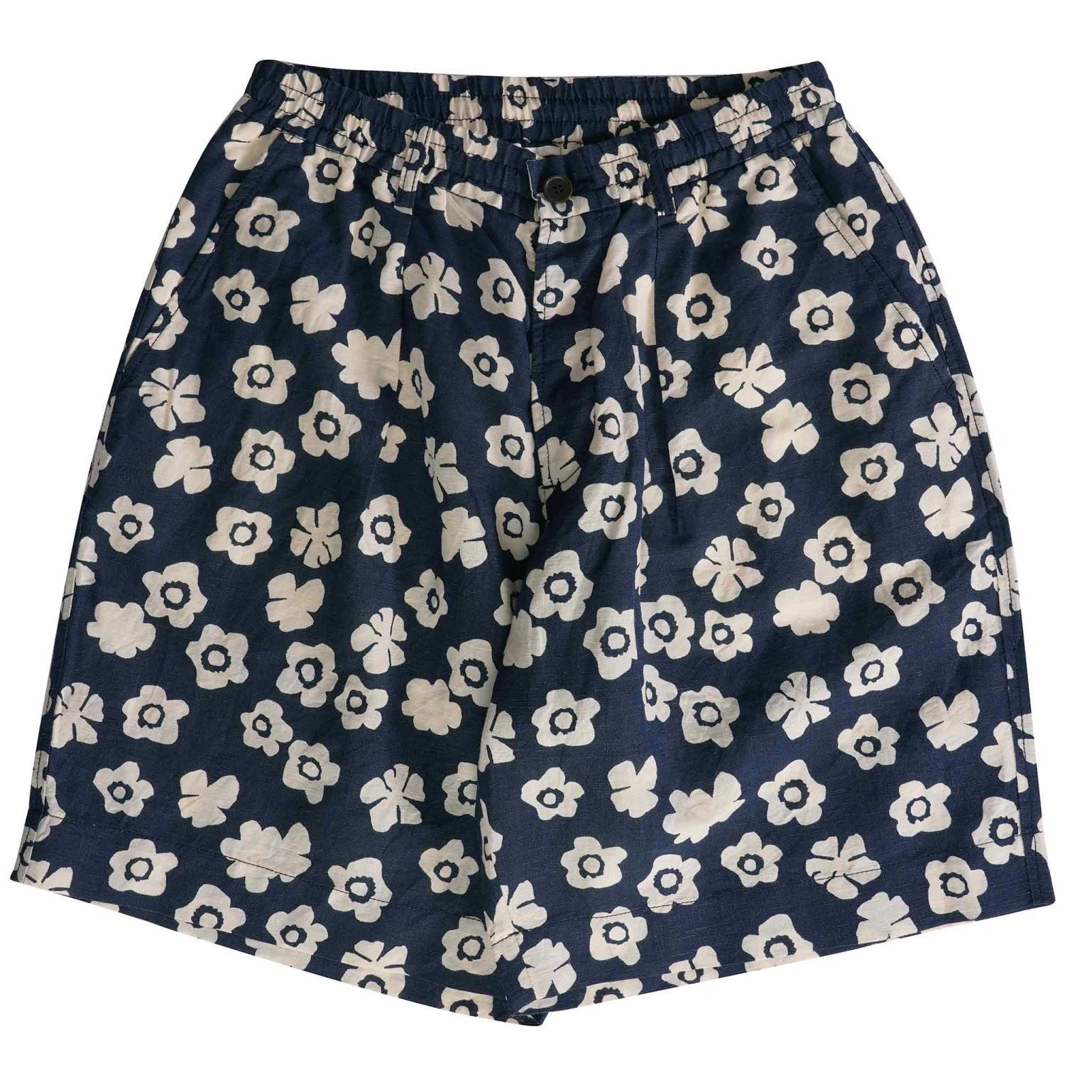 The Universal Works Pleated Track Shorts are made of a lightweight and breathable cotton/linen mix fabric with an allover flower design that is perfect for long sunny days. For enhanced comfort, a button fly and an elasticated, drawcord waistline are included.