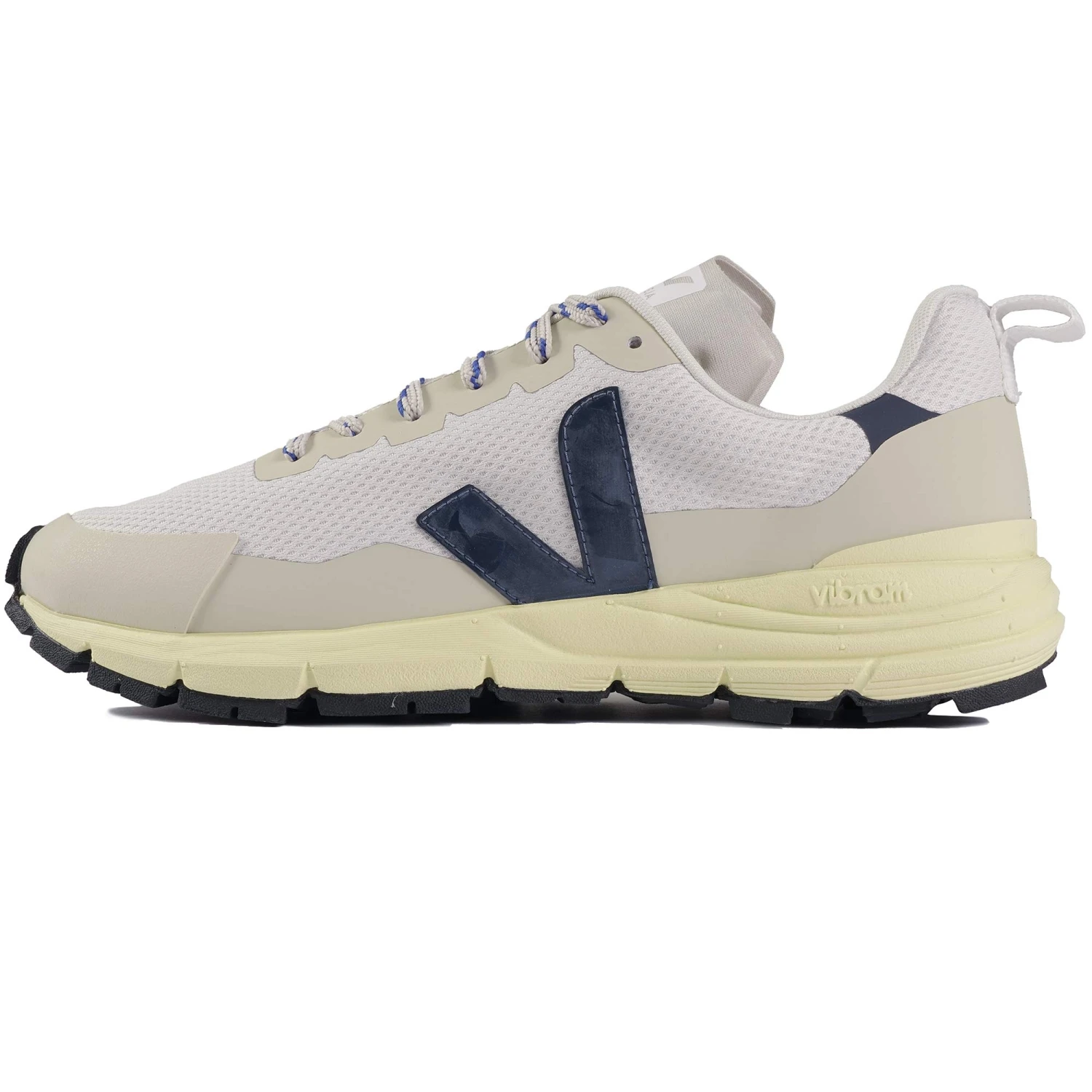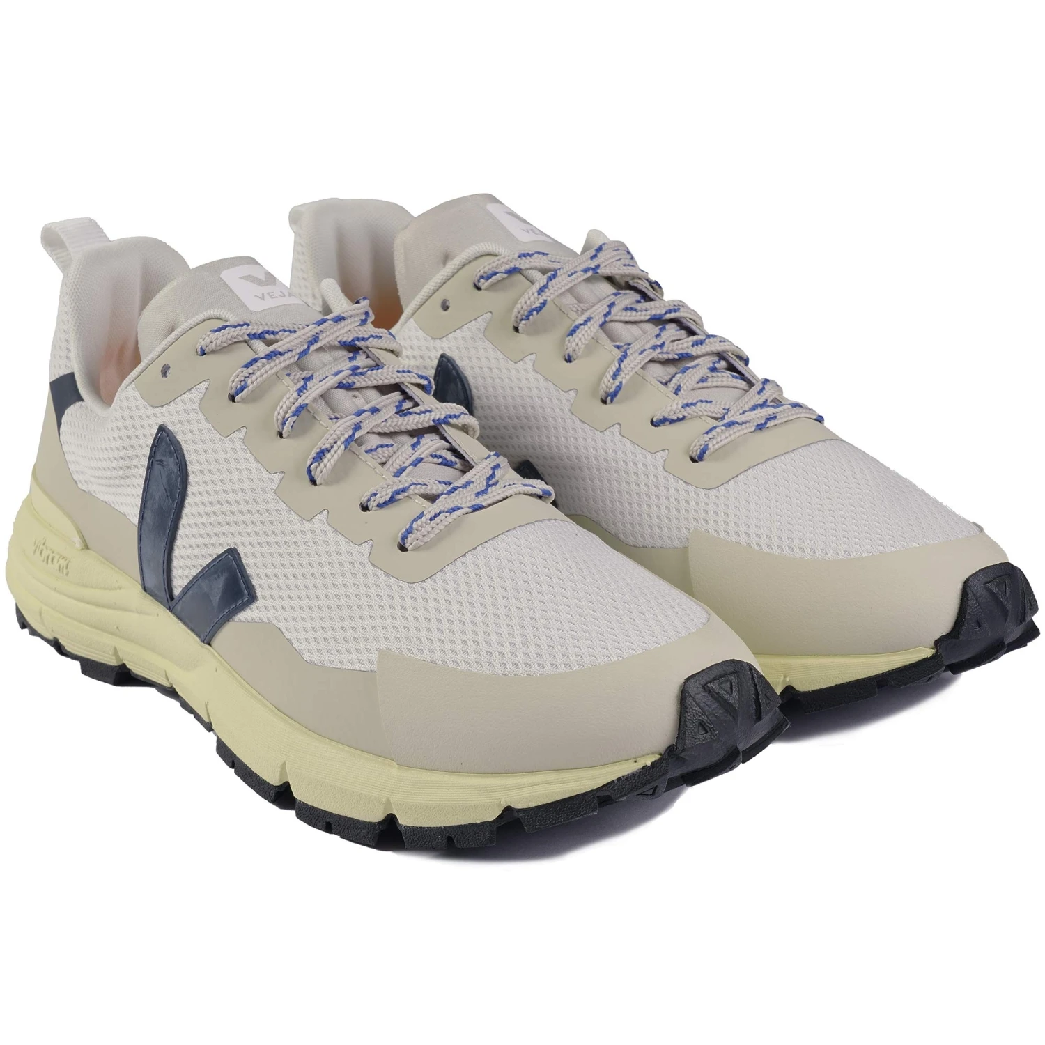 VEJA x VIBRAM is a call to explore with a technical model suitable for outdoor activities. Inspired by VEJA running technology and VIBRAM know-how. Comfortable, technical and resistant, the Dekkan combines functionality and specific high performance components. Inspired by the outdoor world, it can be used for everyday life as well as for walking or hiking. It offers protection and support to the foot, as well as waterproofing around the entire perimeter of the sole. The Alveomesh is a technical fabric made out exclusively of recycled polyester. It brings breathability, flexibility and lightness to the shoe.