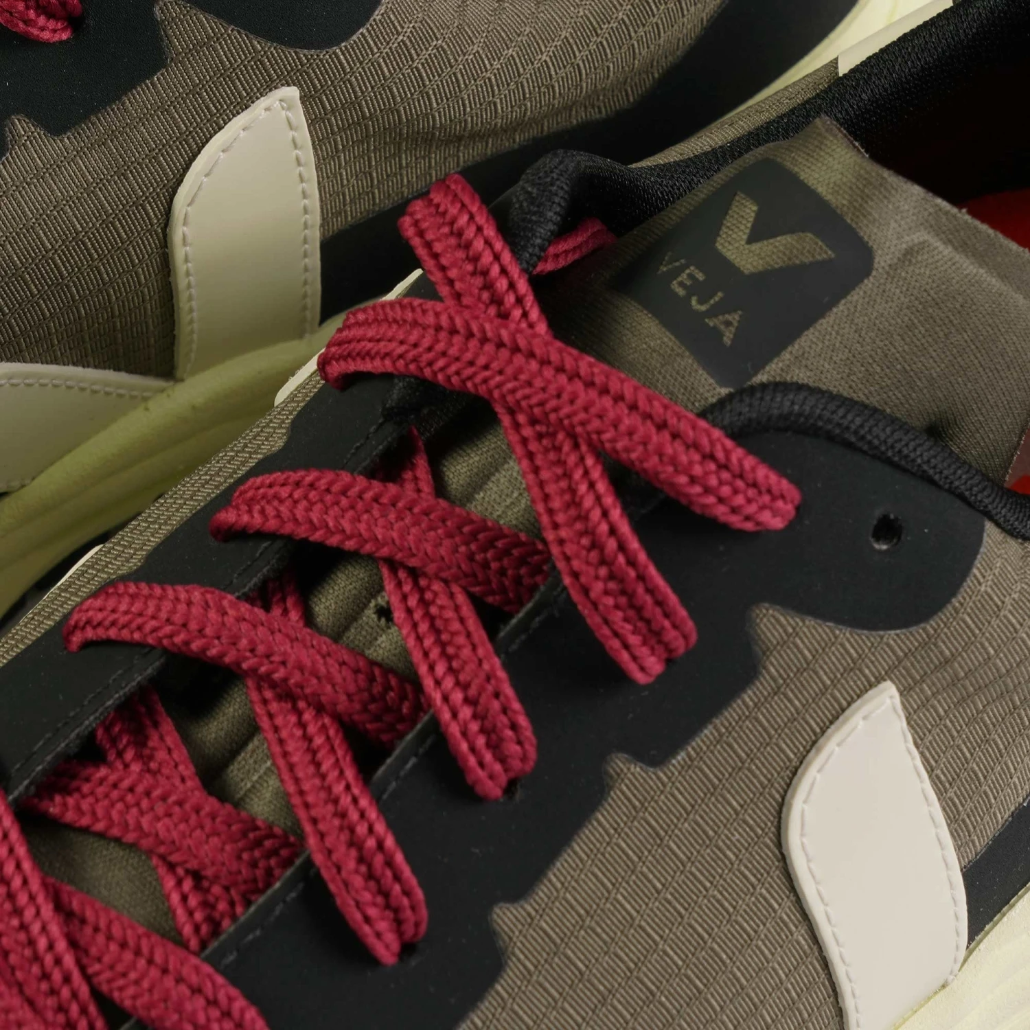 The Dekkan is a travel and outdoor-oriented style that was created by Veja and Vibram. In these eco-friendly sneakers, you may travel, relax, and train. These fashionable trainers, which make use of ripstop technology, have a technical Vibram sole designed specifically for hiking and trekking. Braided sole Shoes with a V-logo made of ripstop material.