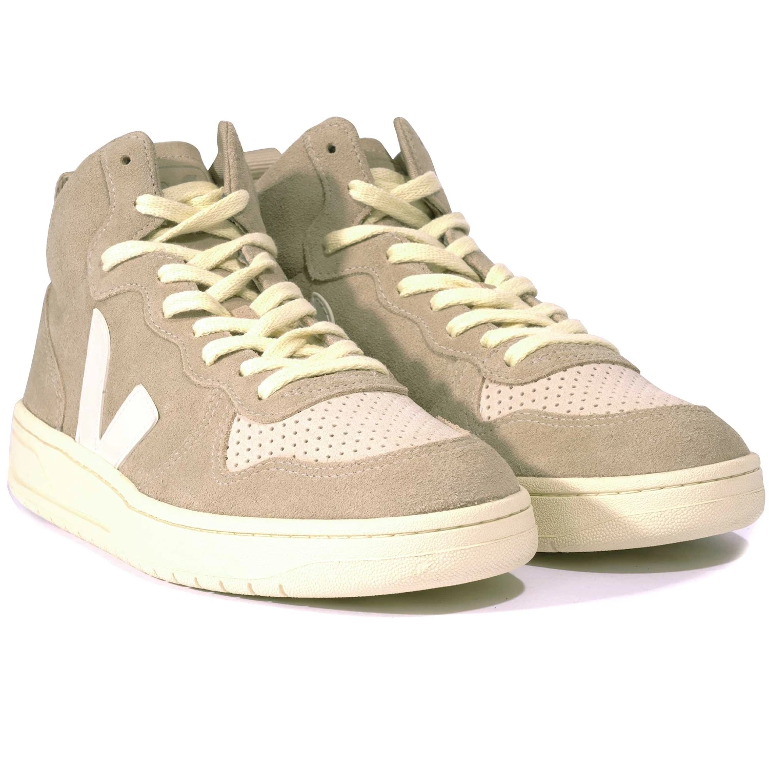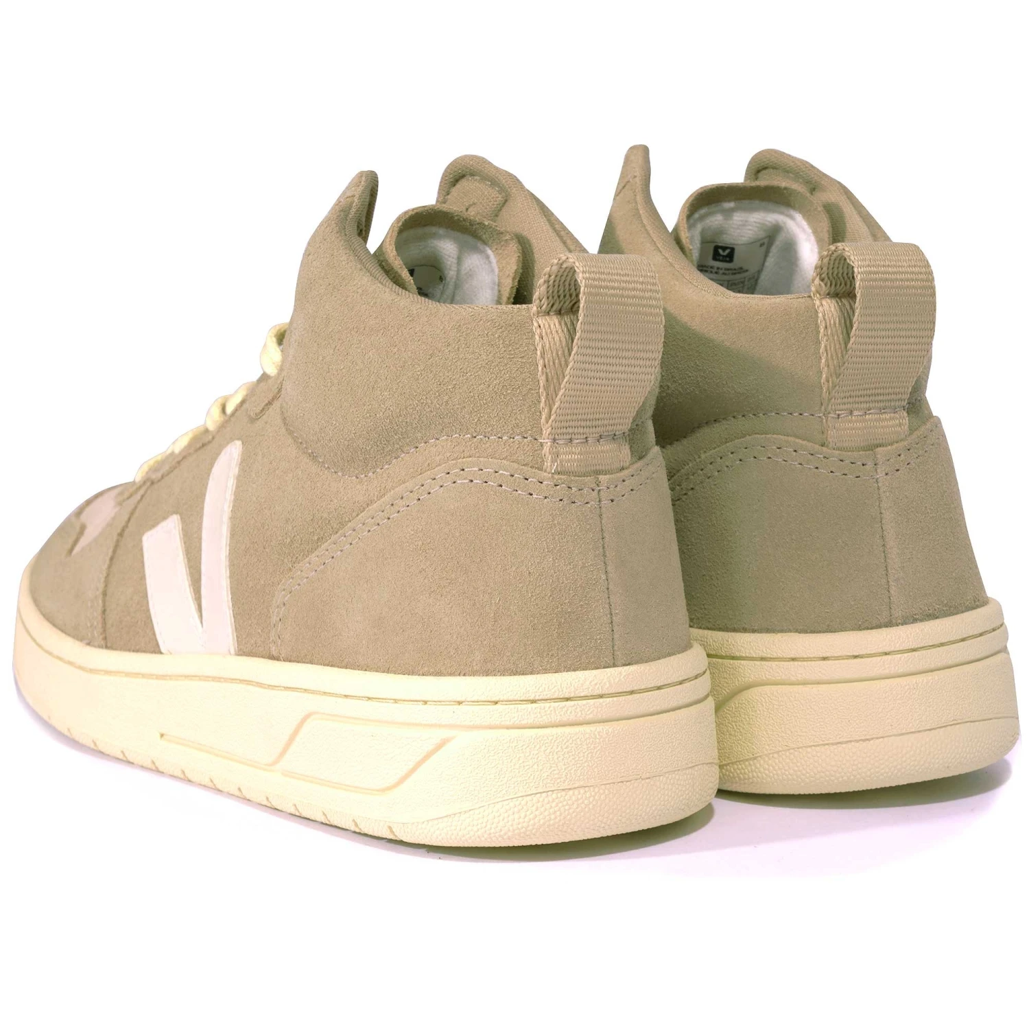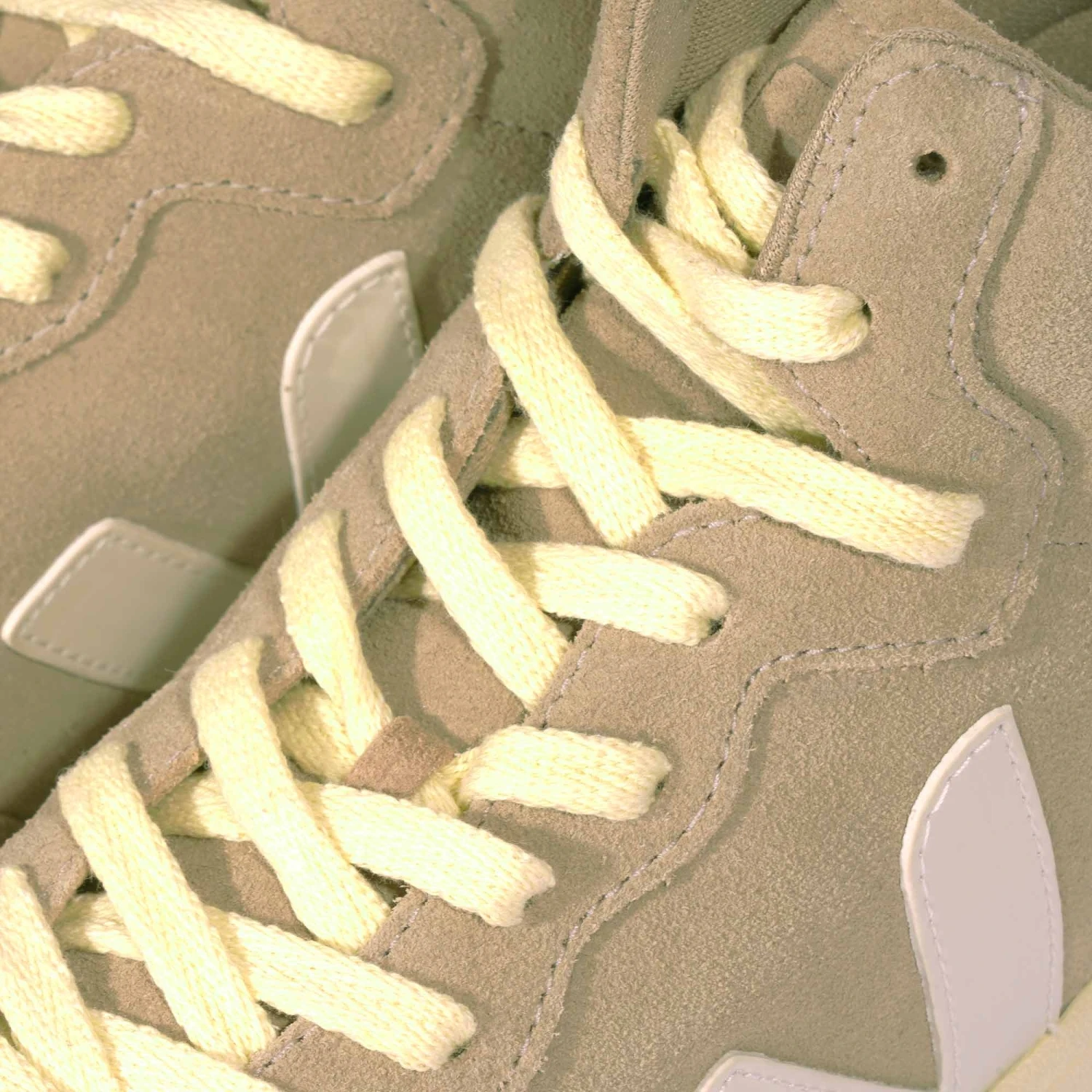 Taking inspiration from the classic high top trainer – the V-15 features a high rise with extra eyelets. The upper is made from a Veja’s leather fabric – a sustainably produced leather alternative that is hard-wearing and looks great. The brands logo V on the side is made from rubber and the shoes lining are made from recycled cotton and polyester. The gum sole is comprised on wild rubber and gives a nice contrast to the upper.