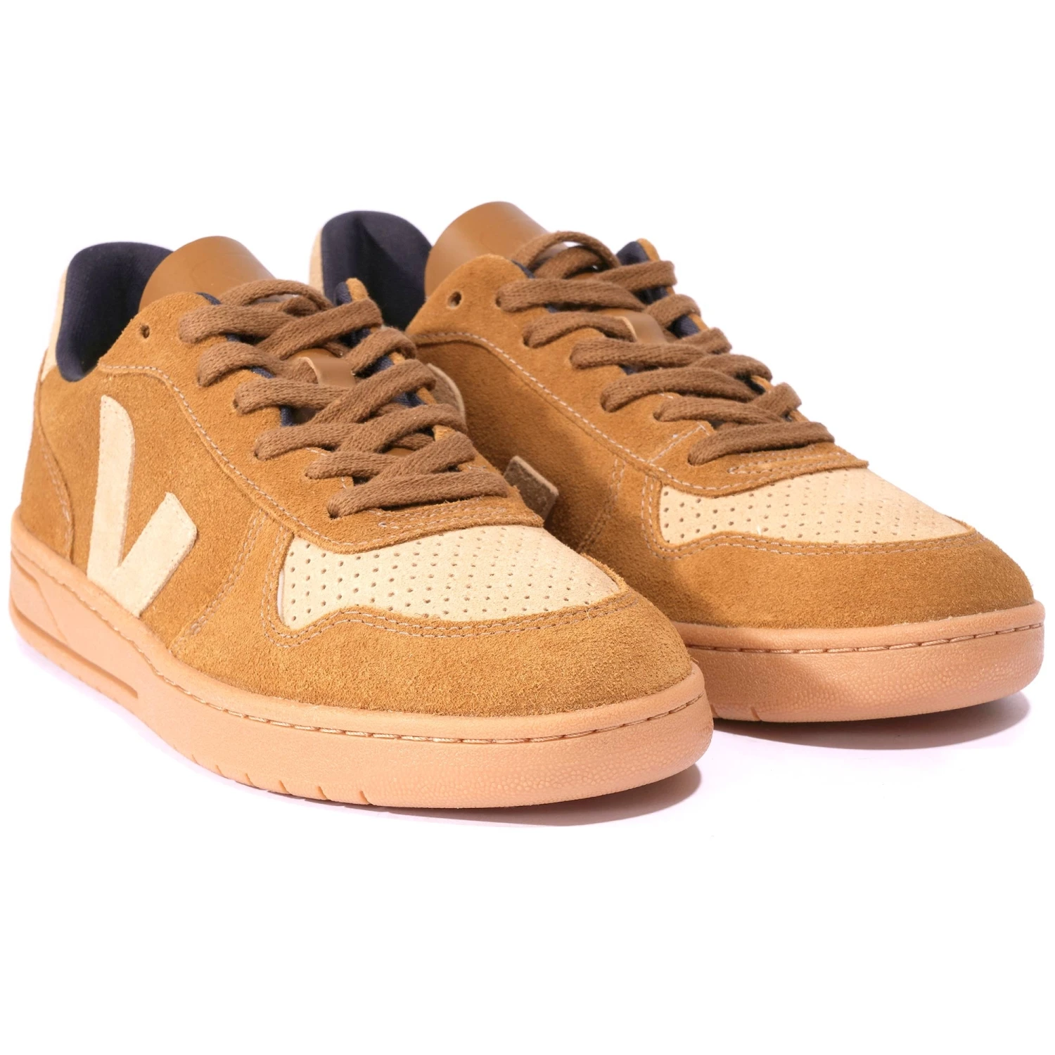 10 ans d’amour… translated as 10 years of love the Veja V-10 model is all about being made of ecological and sustainable materials. Coming in a brown/tan iteration these trainers feature an insole made of wild rubber, a suede upper, panels made of suede and a jersey lining giving you that ultimate comfort whilst on the go. The trainers have an outer sole material of 25% wild rubber made from the Amazonian forest and is beautifully completed with the V logo detailing made of rubber.